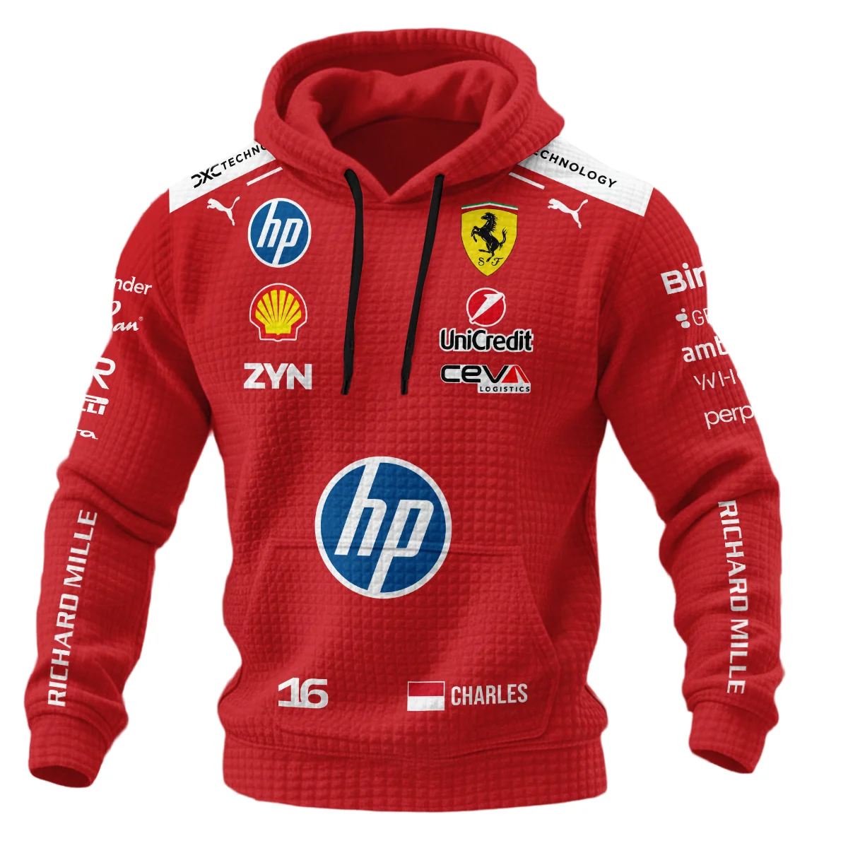 2026 Charles Leclerc Ferrari F1 Teamwear Hoodie Quilted Waffle BLVAFRR2226A1HQW
