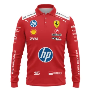 2026 Charles Leclerc Ferrari F1 Teamwear Long Polo Shirt BLVAFRR2226A1LPL