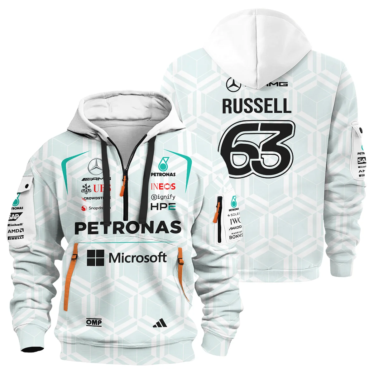 2026 George Russell Mercedes F1 Teamwear Hoodie Half Zip BLGR30326A2HDF – White