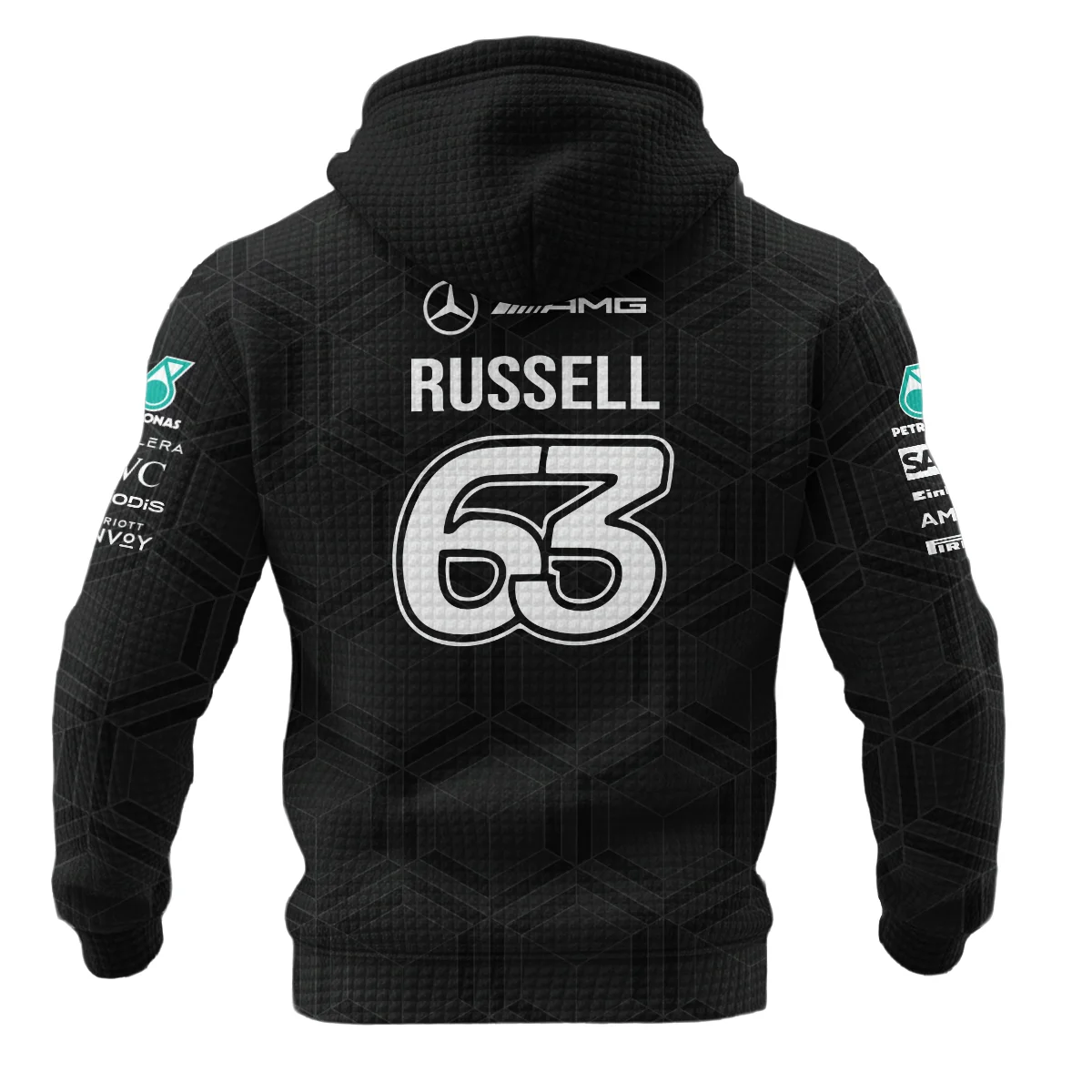 2026 George Russell Mercedes F1 Teamwear Hoodie Quilted Waffle BLGR30326A1HQW – Black