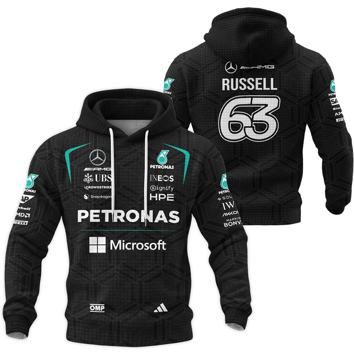 2026 George Russell Mercedes F1 Teamwear Hoodie Quilted Waffle BLGR30326A1HQW - Black 2026 George Russell Mercedes F1 Teamwear Hoodie Quilted Waffle BLGR30326A1HQW - Black