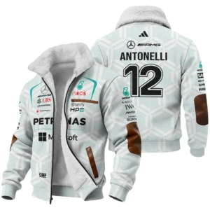 2026 Kimi Antonelli Mercedes F1 Teamwear Winter Fleece Jacket BLKA29326A2WFJ – White