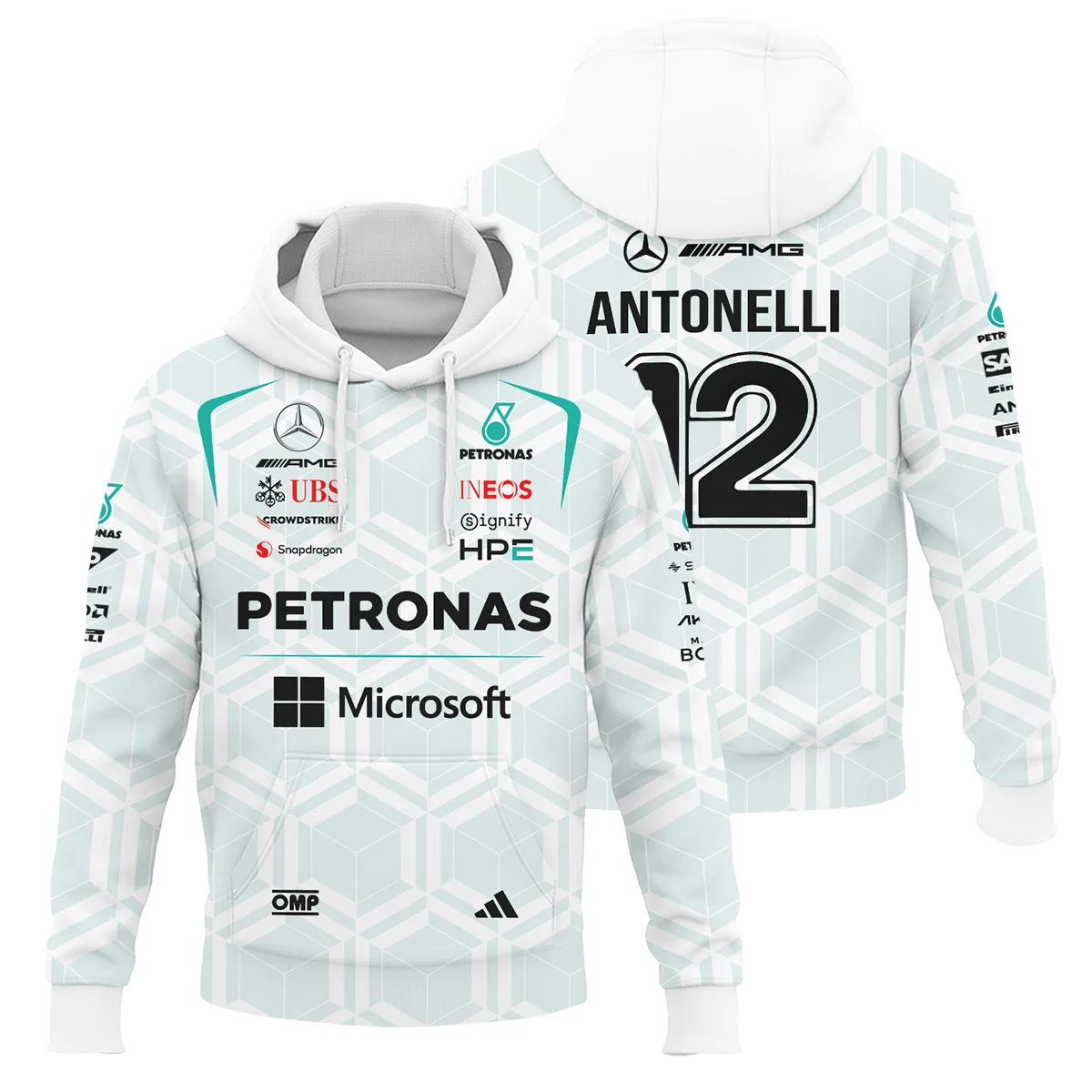 2026 Kimi Antonelli Mercedes F1 Teamwear Hoodie BLKA29326A2HD – White