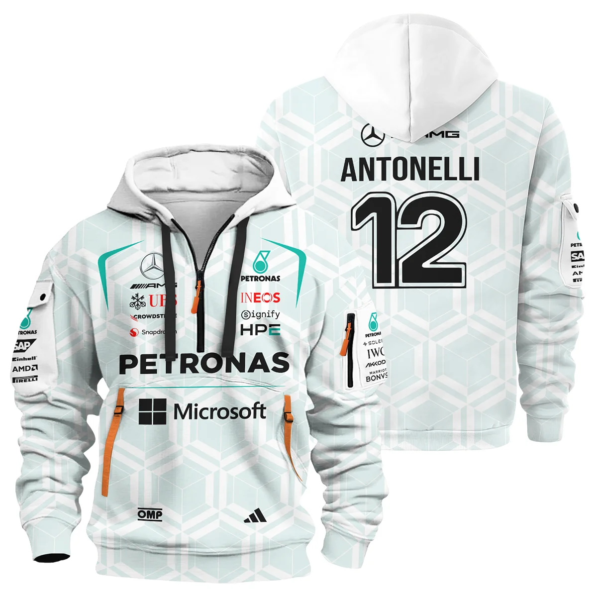2026 Kimi Antonelli Mercedes F1 Teamwear Hoodie Half Zip BLKA29326A2HDF – White