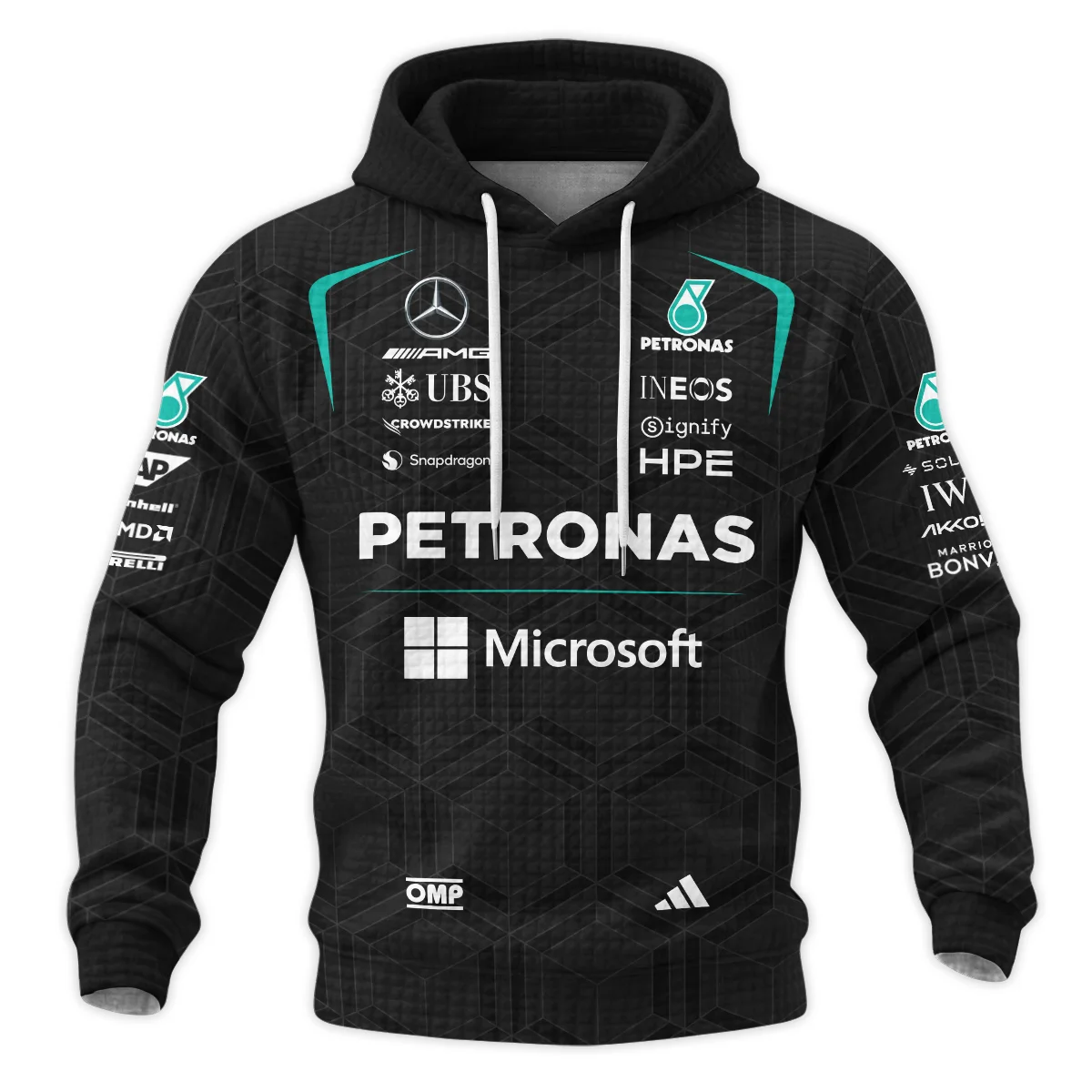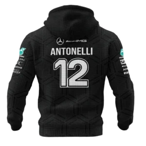 2026 Kimi Antonelli Mercedes F1 Teamwear Hoodie Quilted Waffle BLKA29326A1HQW – Black