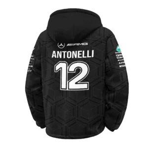 2026 Kimi Antonelli Mercedes F1 Teamwear Hoodie Quilted Waffle BLKA29326A1HQW – Black