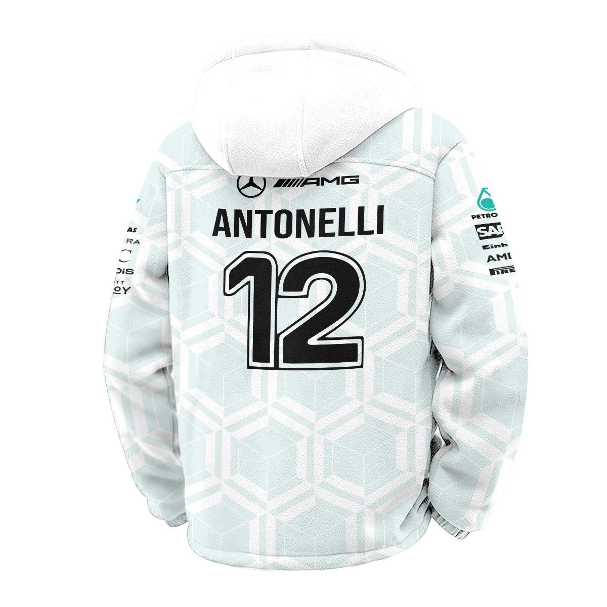 2026 Kimi Antonelli Mercedes F1 Teamwear Winter Fleece Jacket BLKA29326A2WFJ – White