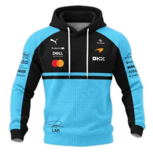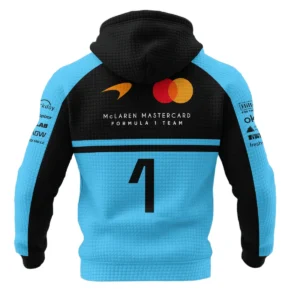 2026 Lando Norris 1 McLaren F1 Teamwear Hoodie Quilted Waffle BLNR25326A3HQW – Cyan