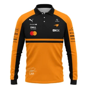 2026 Lando Norris 1 McLaren F1 Teamwear Long Polo Shirt BLNR25326A1LPL – Orange