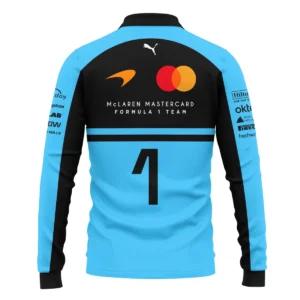 2026 Lando Norris 1 McLaren F1 Teamwear Long Polo Shirt BLNR25326A3LPL – Cyan