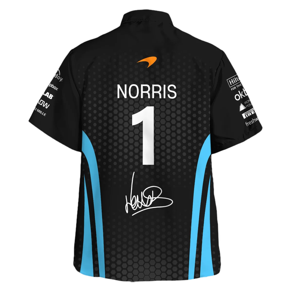 2026 Lando Norris McLaren F1 Teamwear Hawaiian Shirt BLNR26226A3HW – Cyan