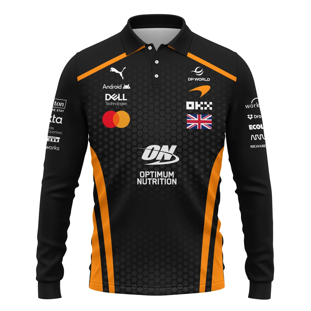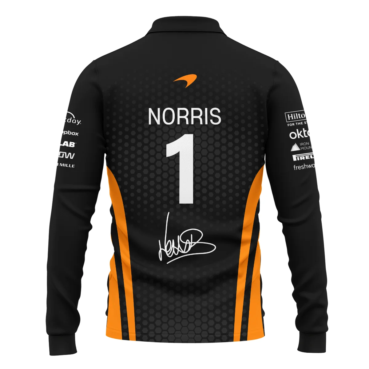 2026 Lando Norris McLaren F1 Teamwear Long Polo Shirt BLNR26226A1LPL – Orange