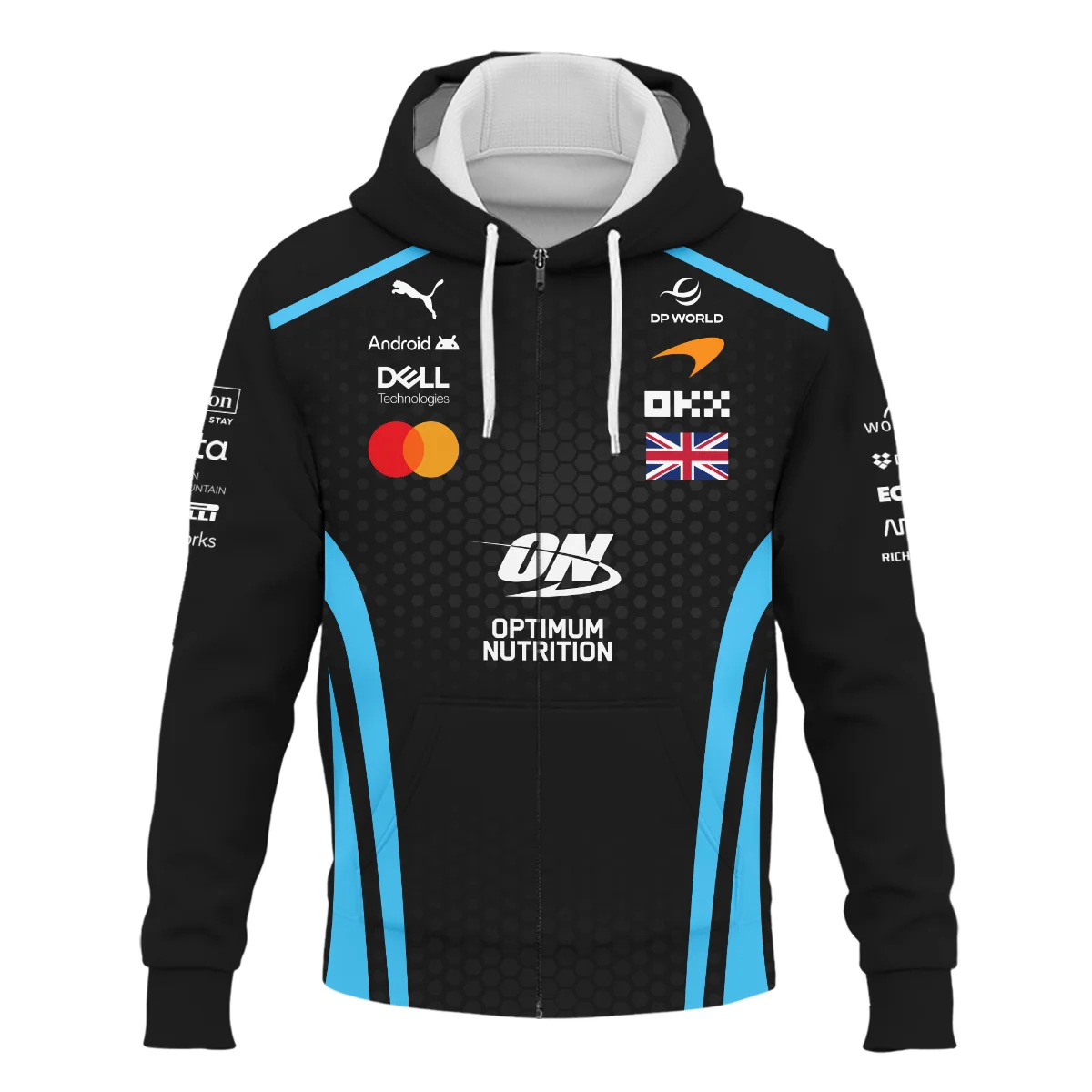 2026 Lando Norris McLaren F1 Teamwear Zipper Hoodie BLNR26226A3ZHD – Cyan