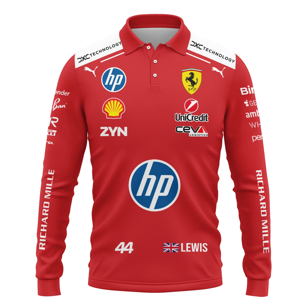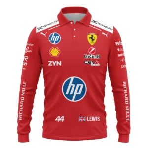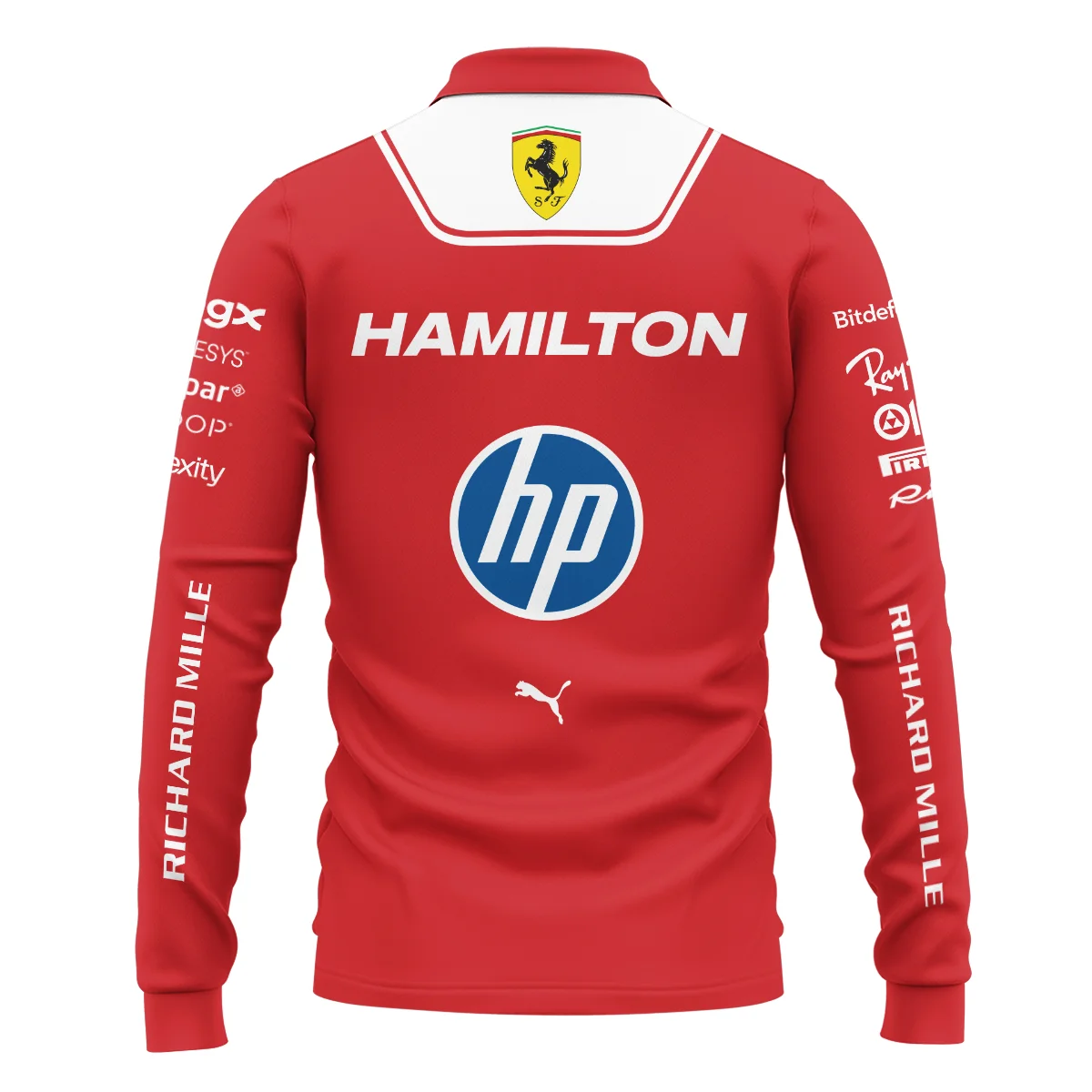 2026 Lewis Hamilton Ferrari F1 Teamwear Long Polo Shirt BLVAFRR2226A3LPL