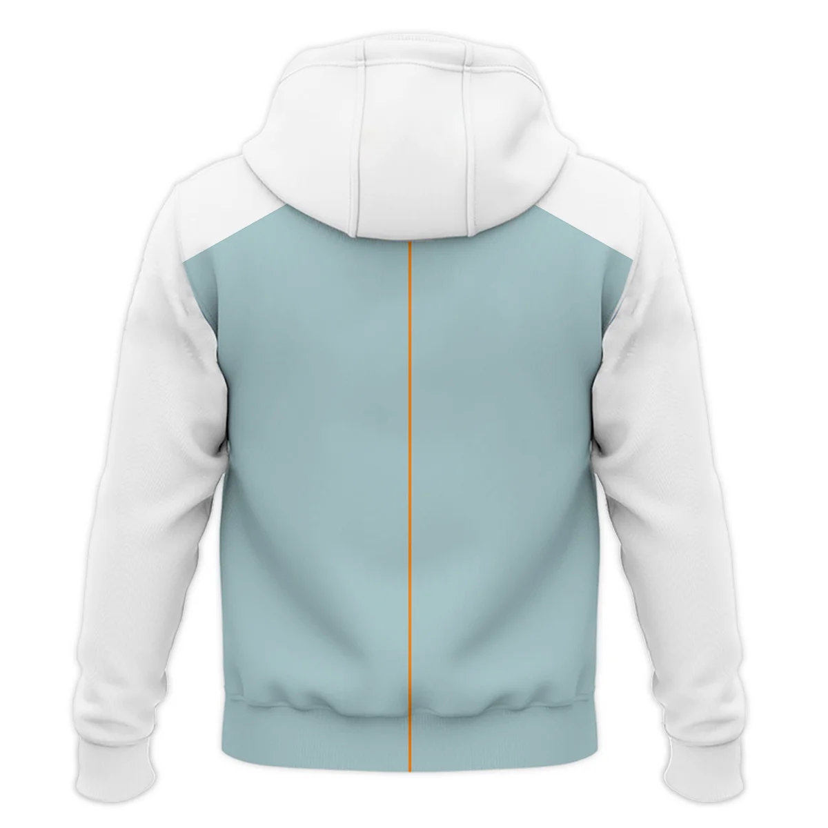 • Hoodie with full body front zipper closure, two frontside hip’s pockets.